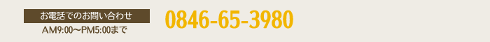 | 電話番号 | TEL:0846-65-3980 FAX:0846-65-3972 |