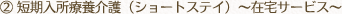お客様やご家庭の都合(介護疲れ・冠婚葬祭・旅行など)で一時的に自宅での介護ができない場合、短期間でロングステイと同じサービスをさせていただきます。